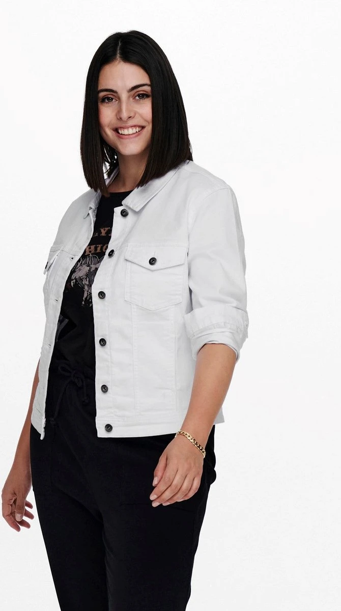 Wit spijkerjasje Carwespa in een langere uitvoering. Deze Carwespa heeft lange mouwen met aan het einde een metalen knoop. Je kunt het jasje volledig sluiten en heeft een klassieke kraag bij de hals. Twee borstzakken en steekzakken op het onderste gedeelte. Mooi afgewerkt en heerlijk zomers.