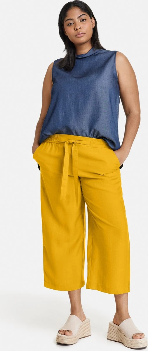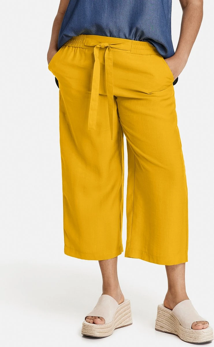 Maakt jouw vrijetijds-outfit compleet en mag in geen garderobe ontbreken: dankzij deze culotte kun je verschillende, modieuze outfits creëeren. Het huidvriendelijke materiaal zorgt voor een aangenaam draagcomfort. Het modieuze design wordt met nauwkeurige details compleet gemaakt: schuine zakken. Deze chique 3/4-culotte met comfortabele pasvorm, normale taillehoogte en elastische tailleband aan de achterkant brengt een modieus musthave in je kledingkast.