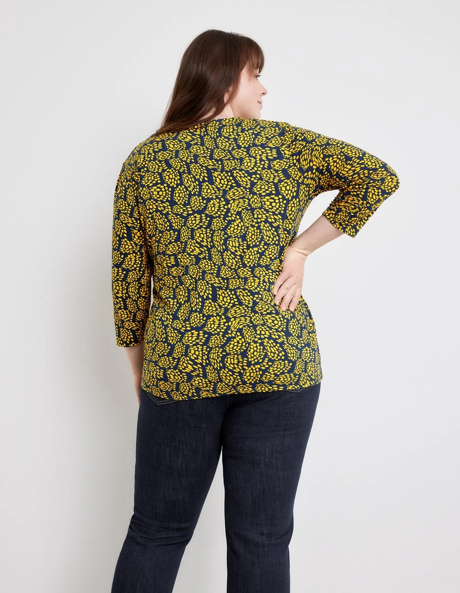 SAMOON Dames Shirt Met 3/4-mouwen Mood Blue Gemustert-44