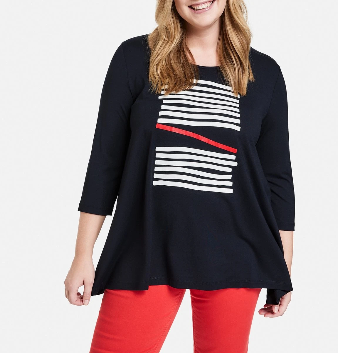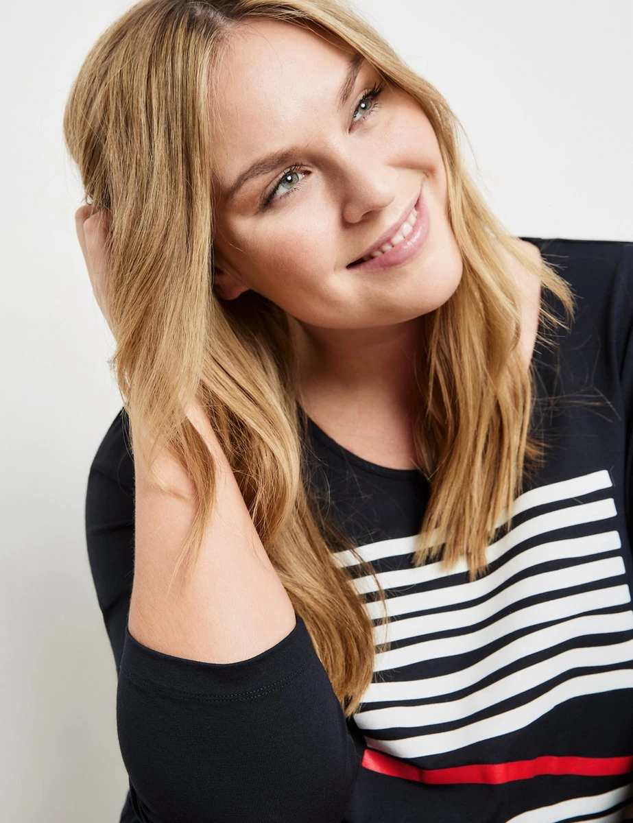 Maakt jouw vrijetijds-outfit compleet en mag in geen garderobe ontbreken: dankzij dit licht uitlopende shirt met 3/4-mouwen met 3/4-mouwen kun je verschillende, stylishe outfits creëeren. De elastische jersey zorgt voor een aangenaam draagcomfort.