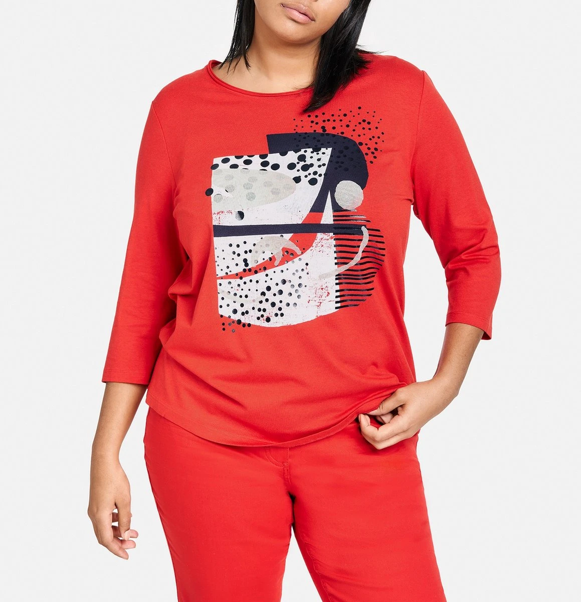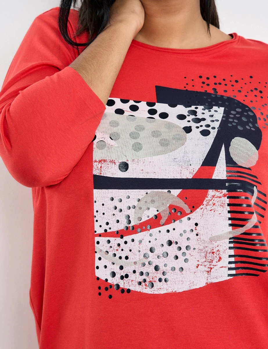 SAMOON Dames Shirt Met 3/4-mouwen Power Red Gemustert-42