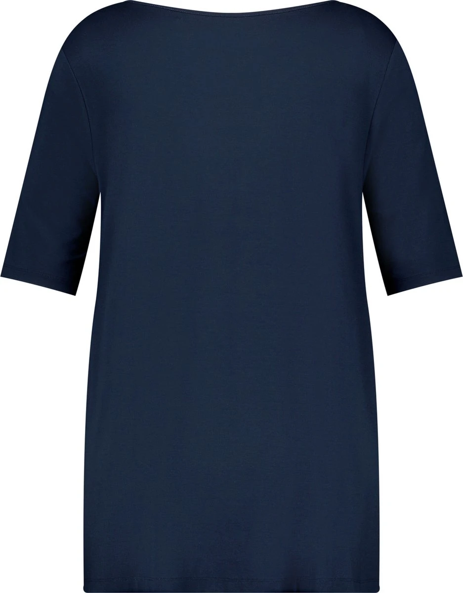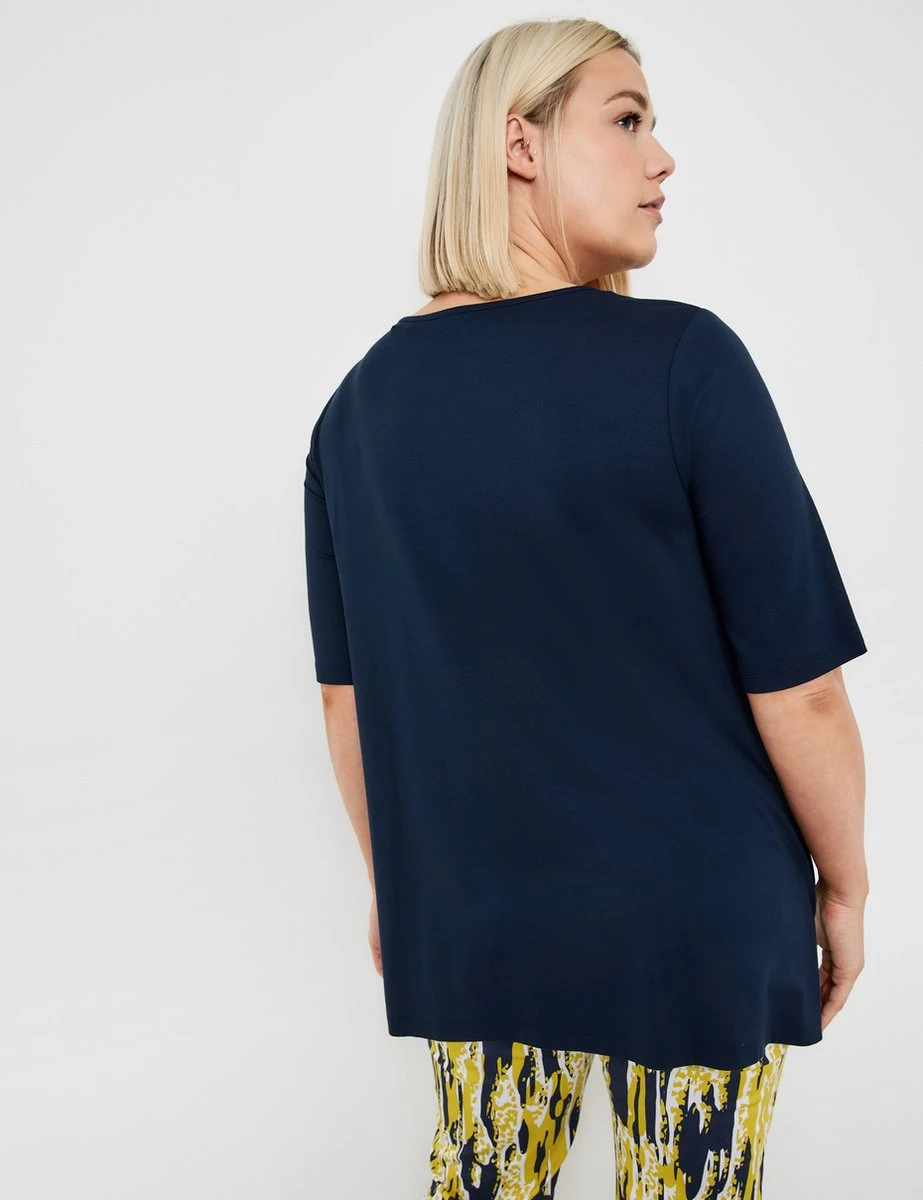 Maakt jouw vrijetijds-outfit compleet en mag in geen garderobe ontbreken: dankzij dit uitlopende shirt met halflange mouwen met halflange mouwen kun je verschillende, modieuze outfits creëeren. De jersey is elastisch en maakt het shirt met halflange mouwen comfortabel.