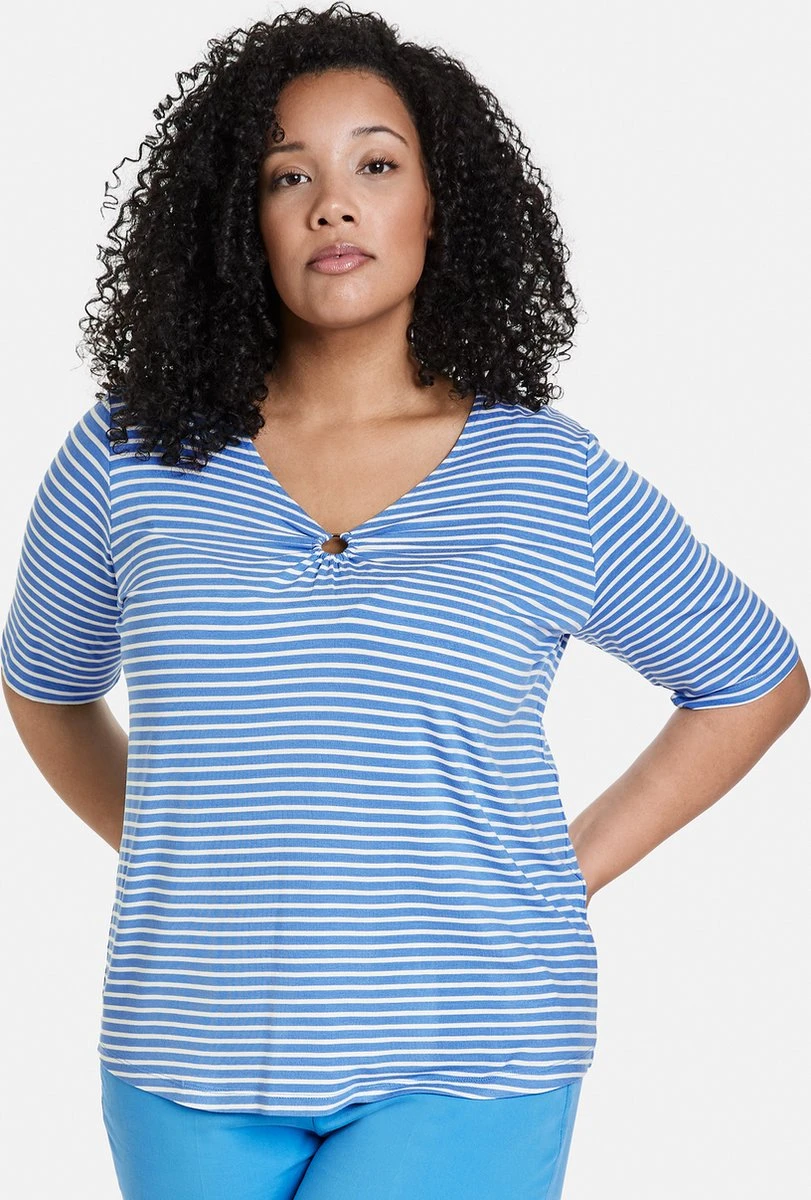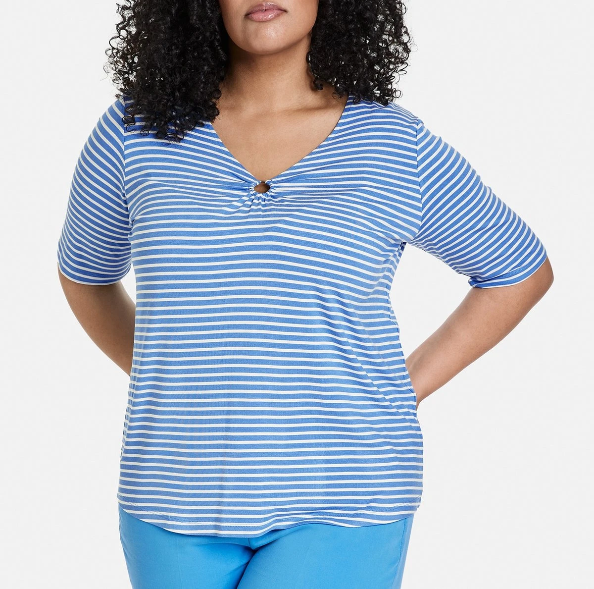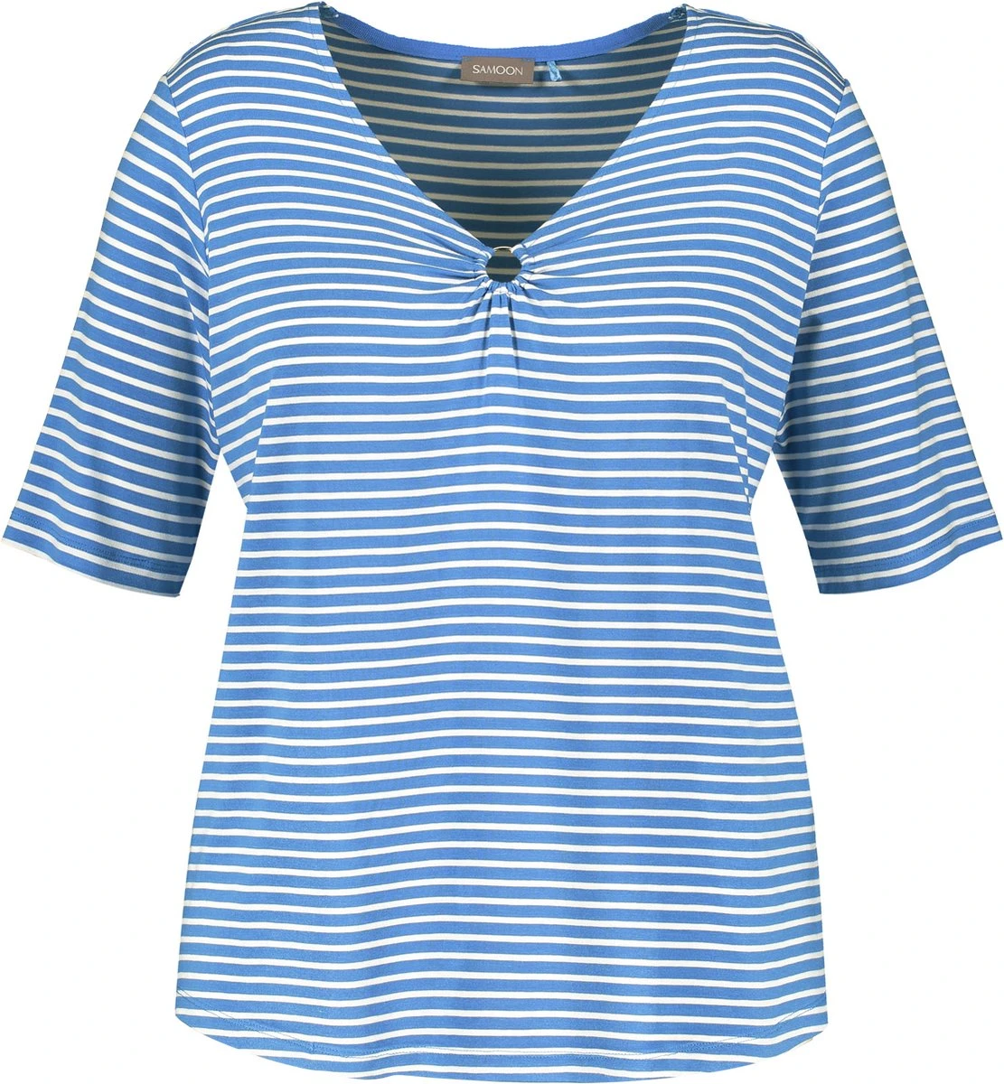 SAMOON Dames T-shirt Blue Bonnet – Offwhite Ringel-56