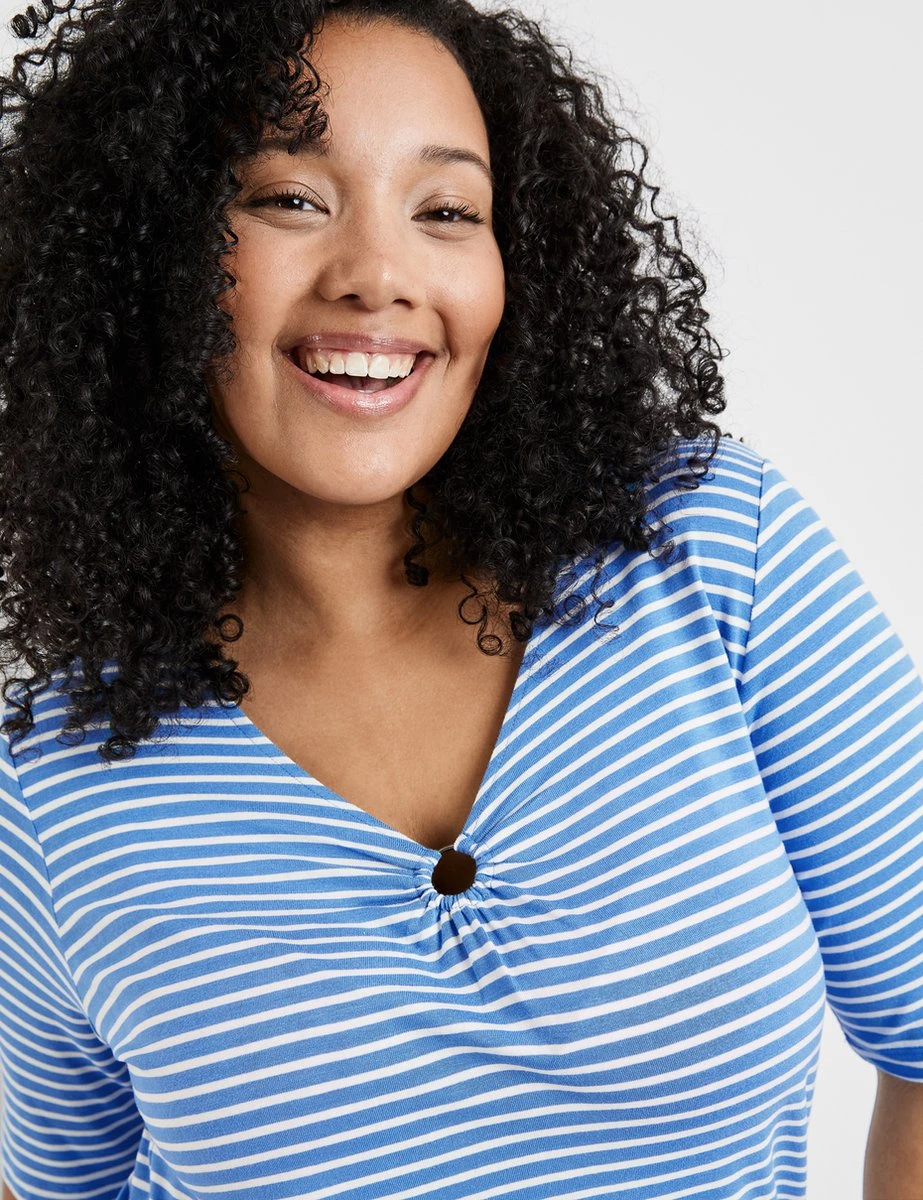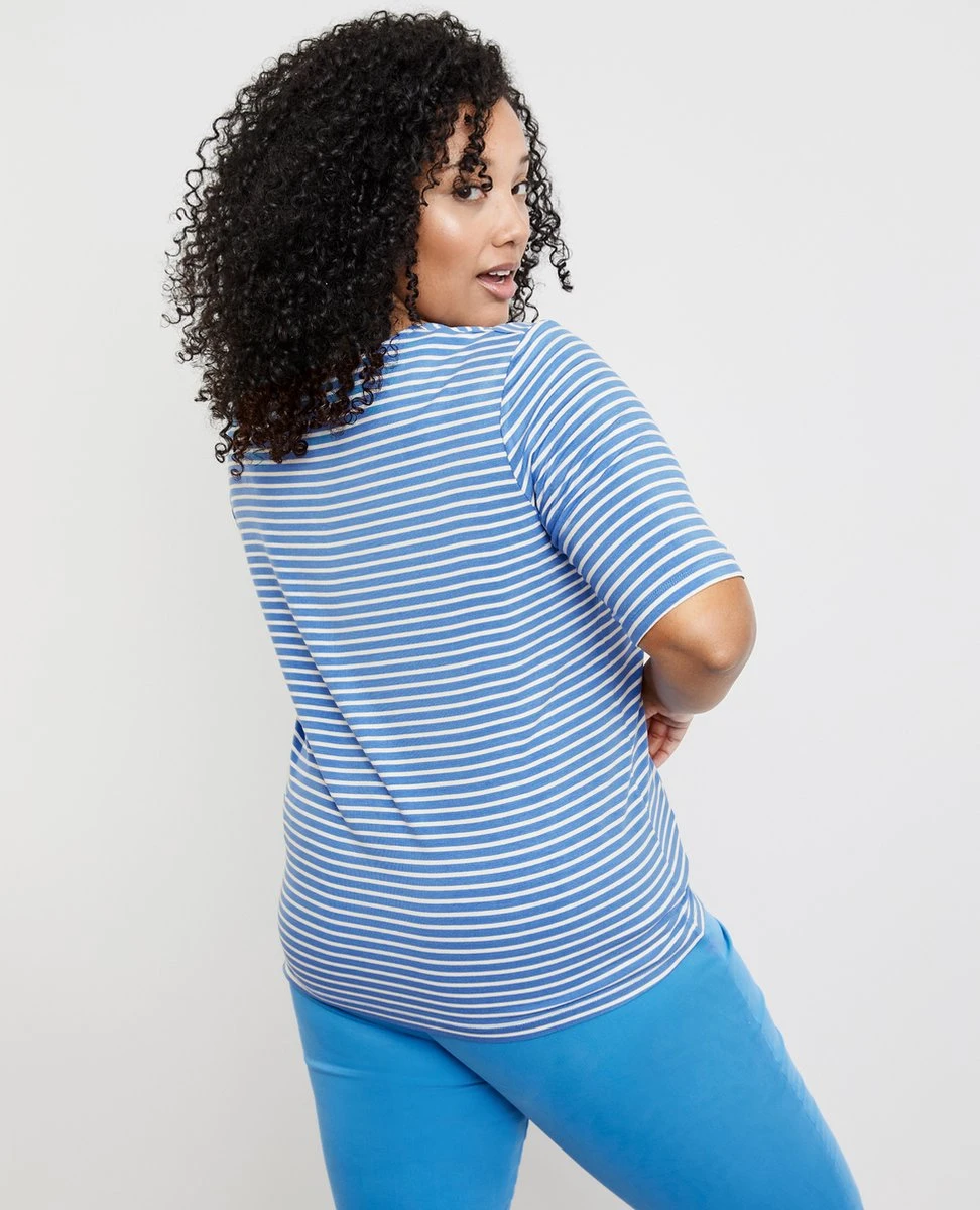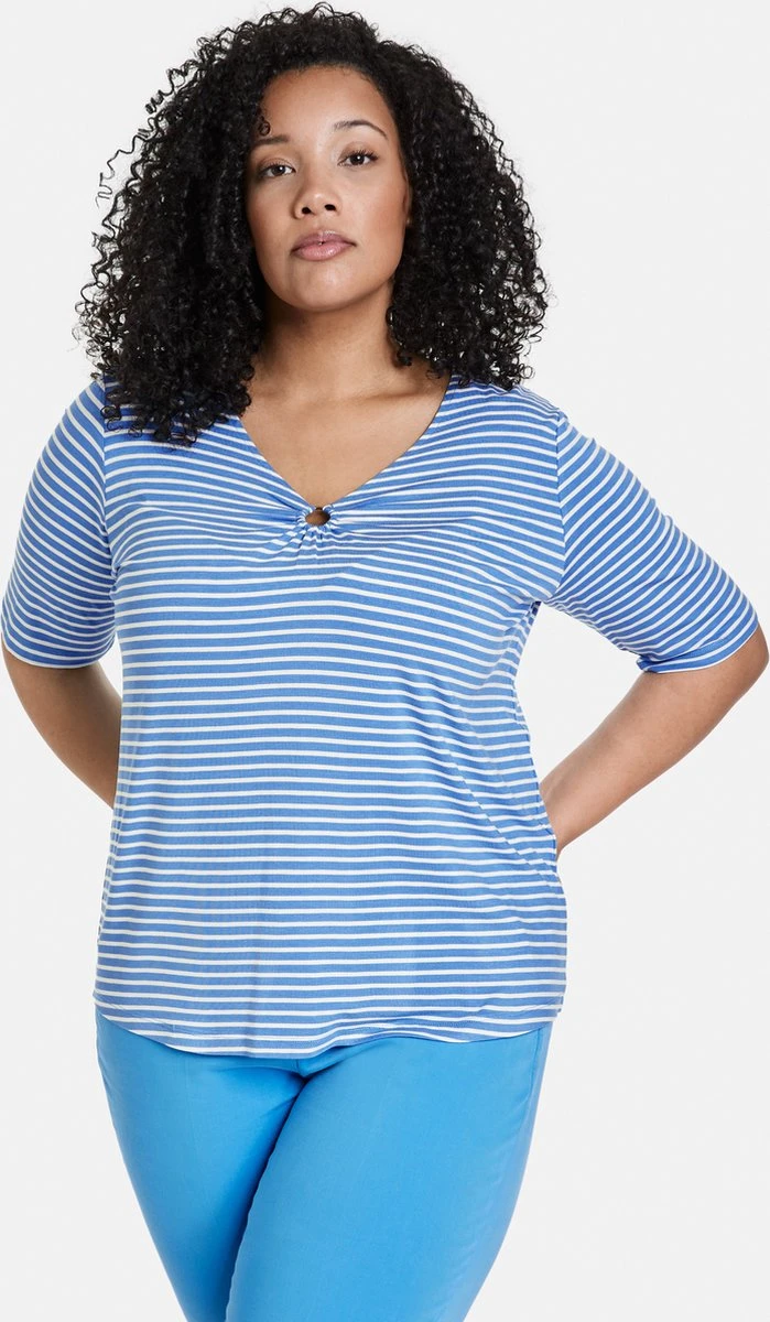 SAMOON Dames T-shirt Blue Bonnet – Offwhite Ringel-56
