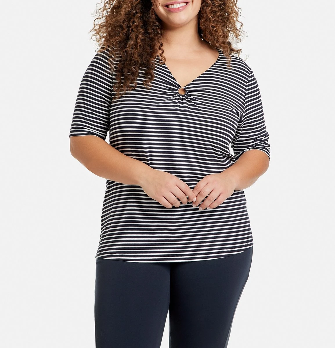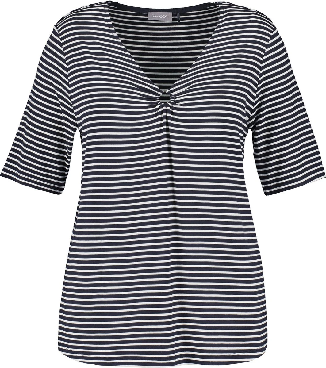 SAMOON Dames T-shirt Navy – Offwhite Ringel-48