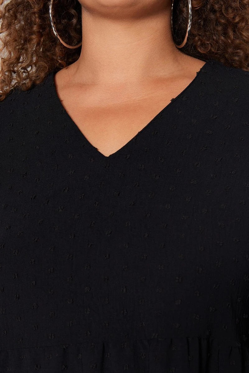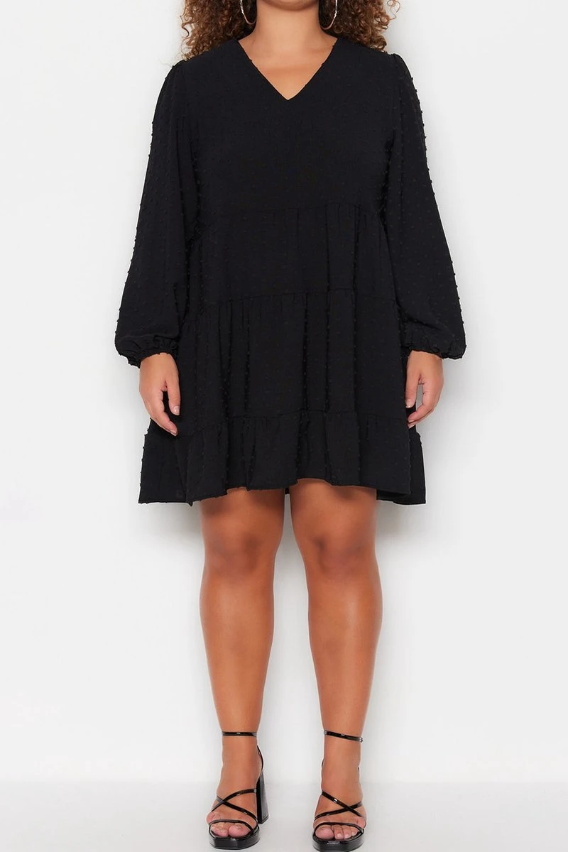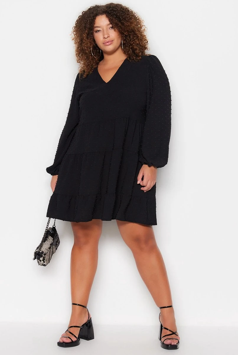 Trendyol Vrouwen Ballon Mouw V-hals Verschuiving Grote Maten Jurk