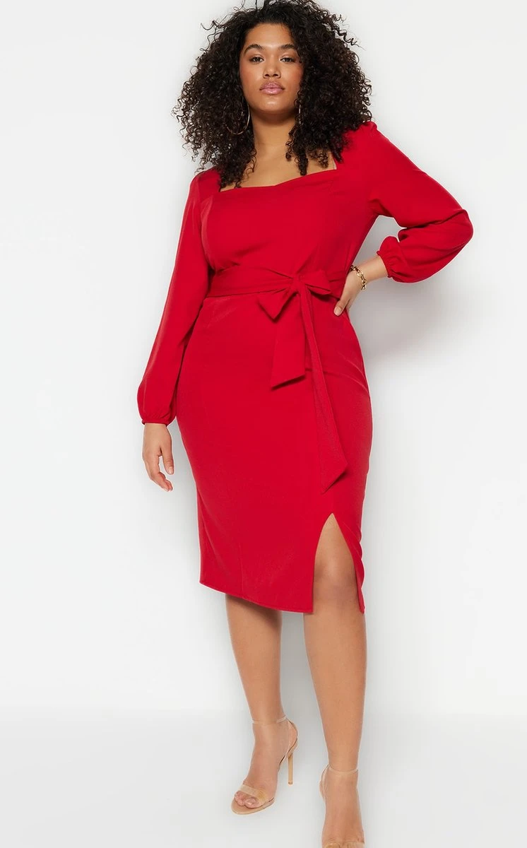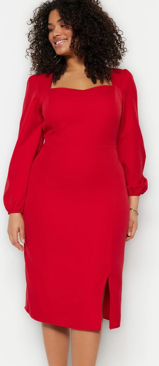 Trendyol Vrouwen Ballon Mouw Vierkante Kraag Verschuiving Grote Maten Jurk