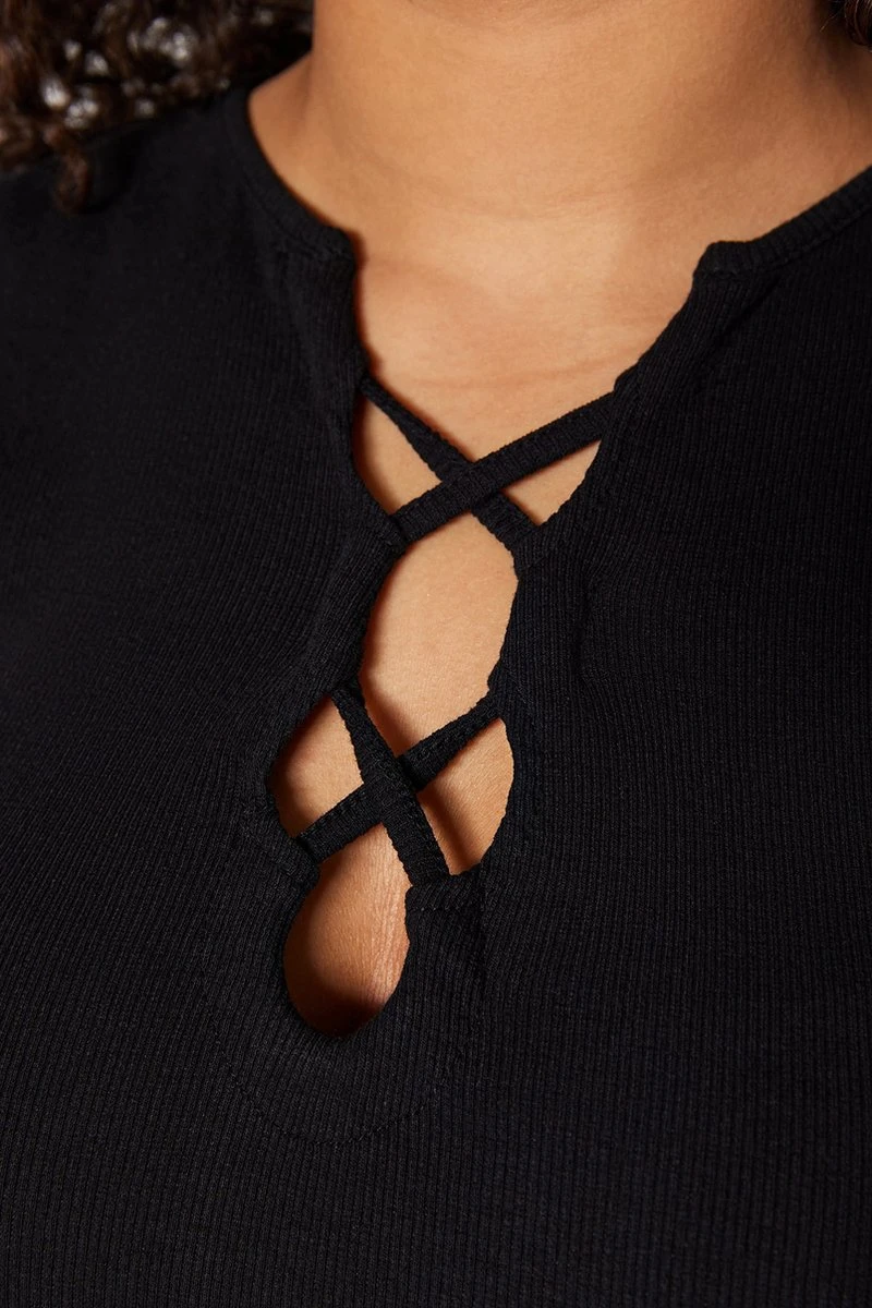 Trendyol Vrouwen Dik Geschorst V-hals Bodycon Plus Size Jurk