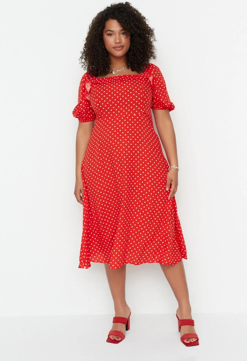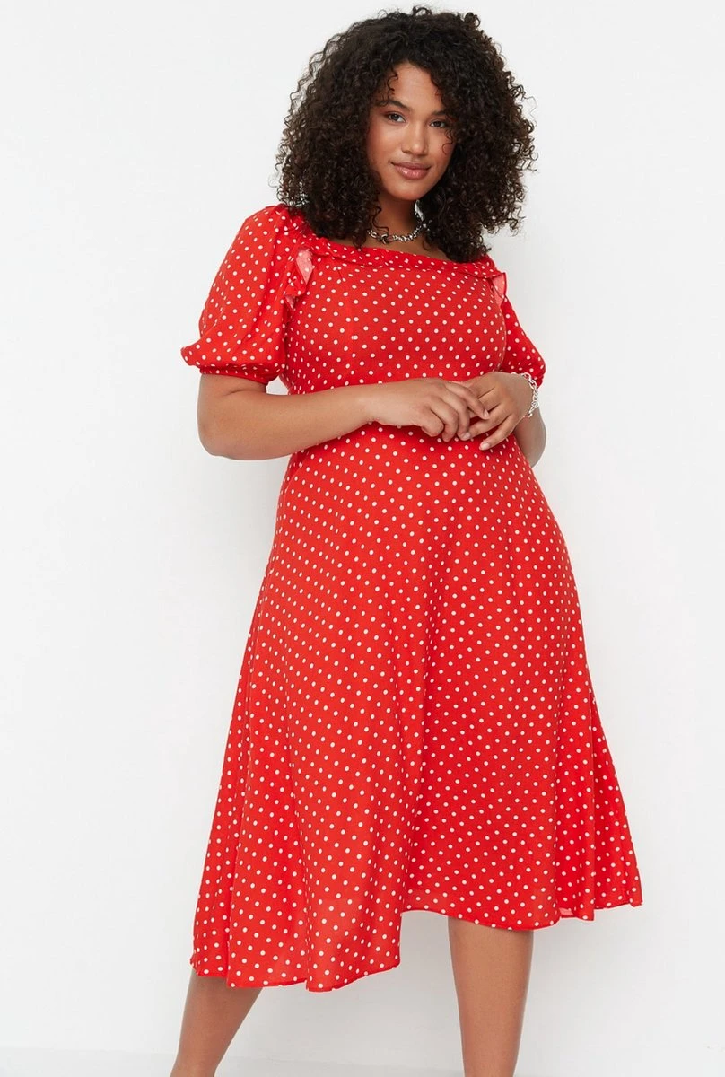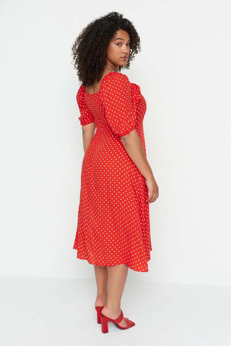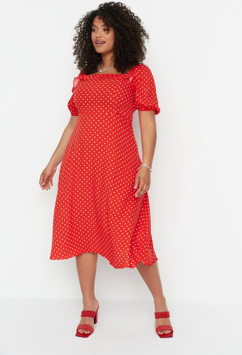 Trendyol Vrouwen Gepofte/ruche Mouw Vierkante Kraag A-lijn Plus Size Jurk