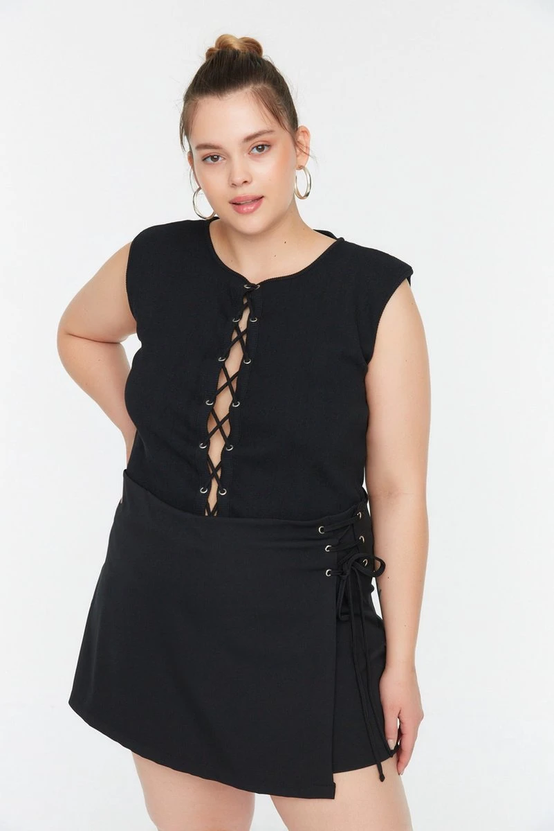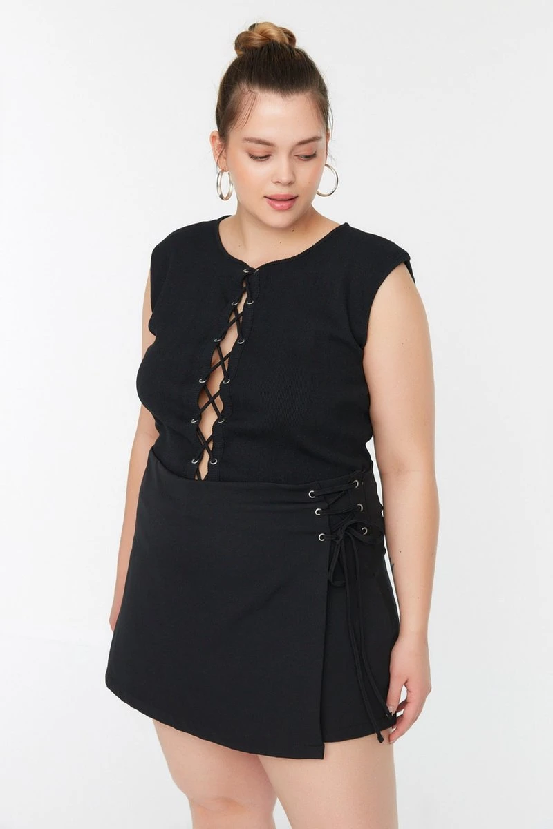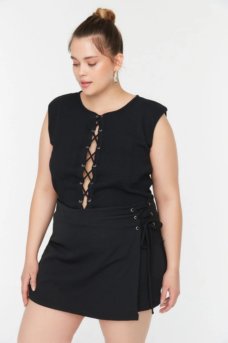 Trendyol Vrouwen Mini Hoge Taille Rechtdoor Grote Maten Shorts & Bermuda