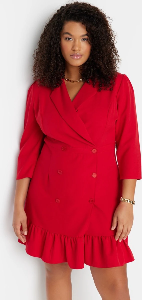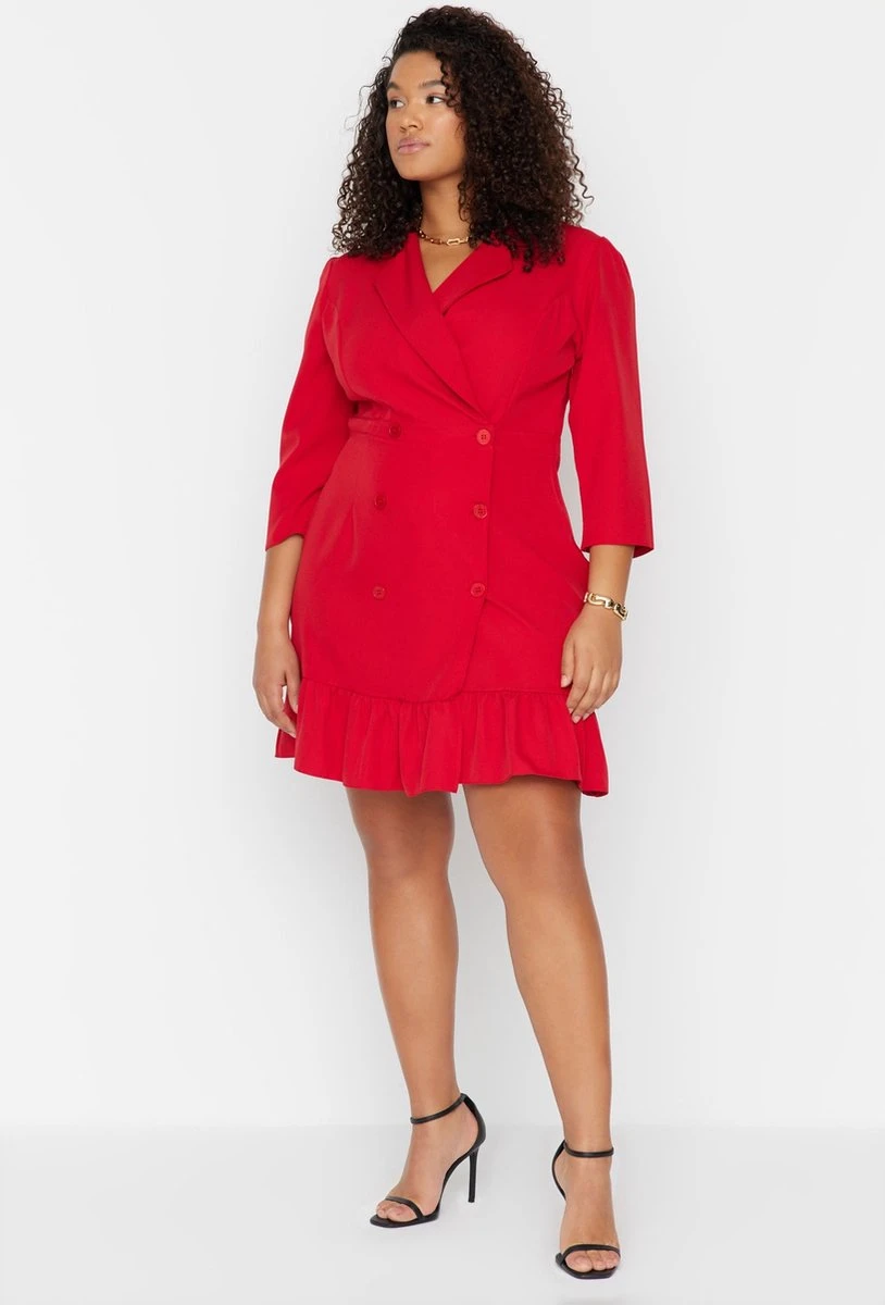 Trendyol Vrouwen Standaard Mouw Reverskraag Basis Grote Maten Jurk