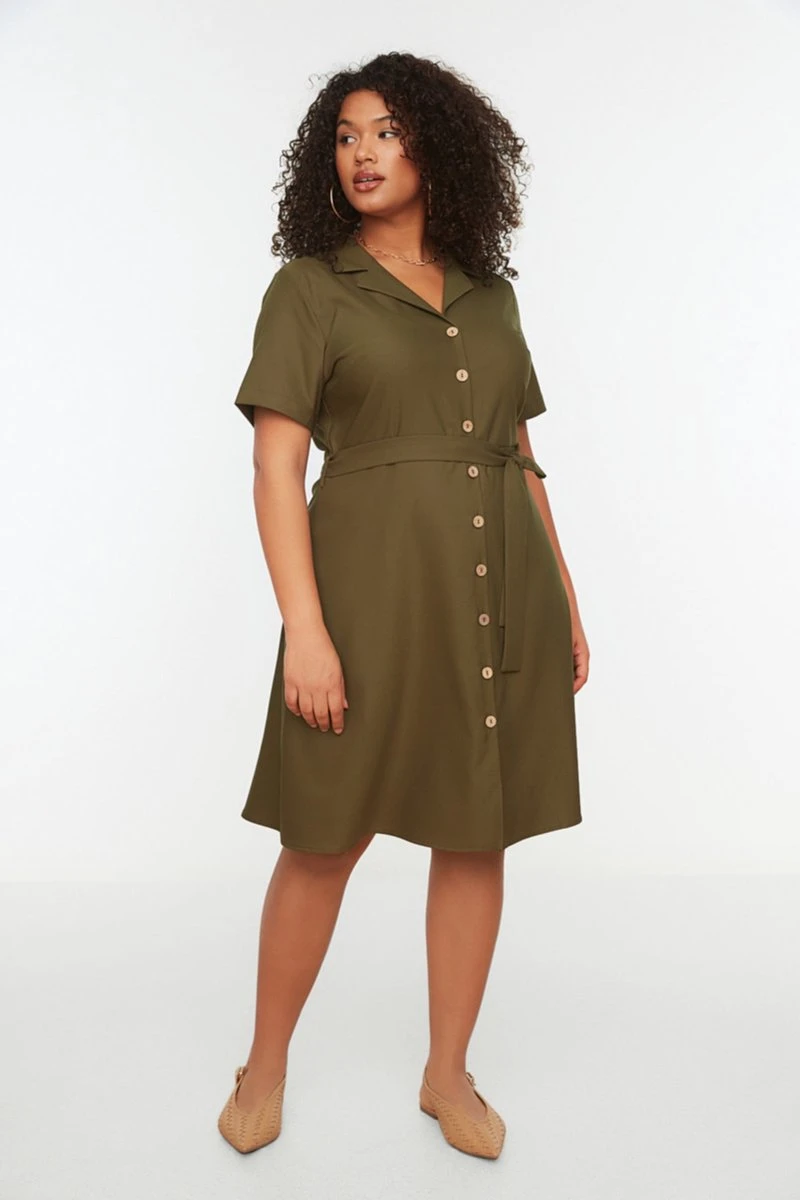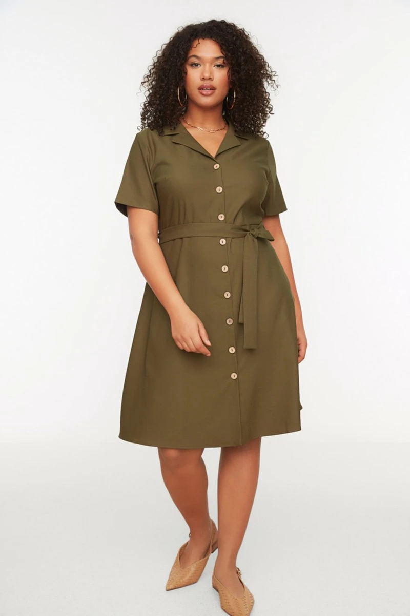 Trendyol Vrouwen Standaard Mouw Reverskraag Overhemdjurk Grote Maten Jurk