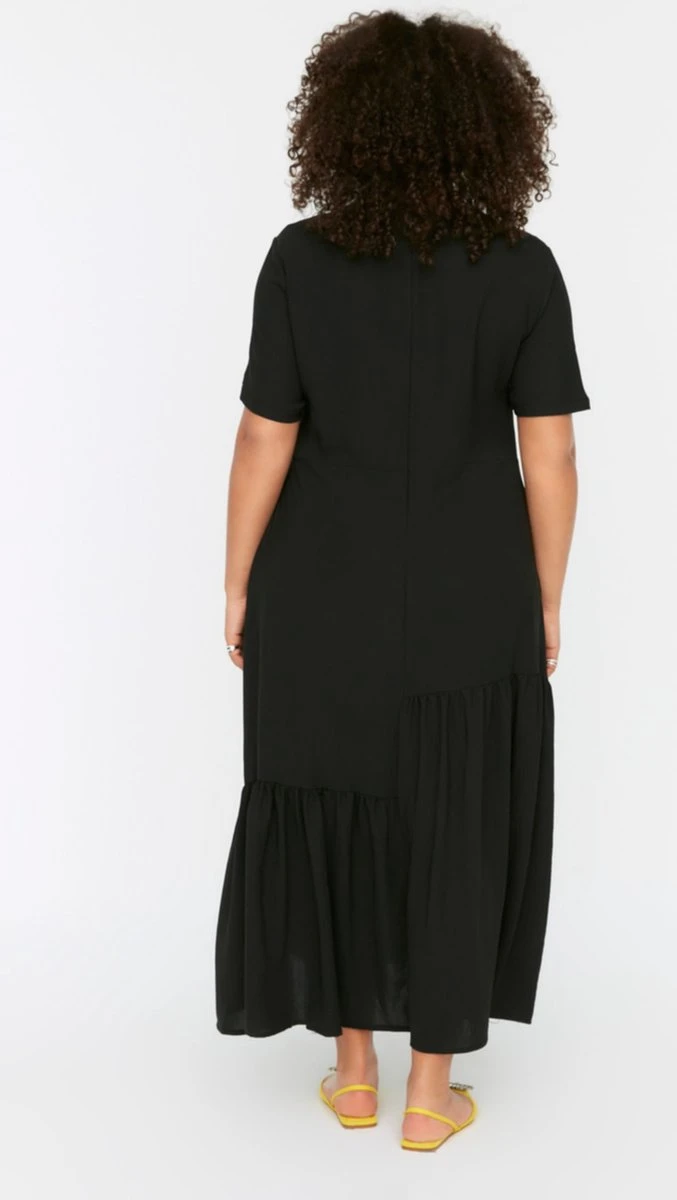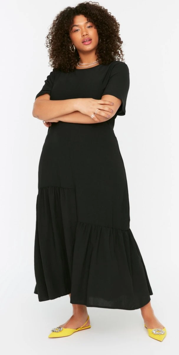 Trendyol Vrouwen Standaard Mouw Ronde Hals Ruche Zoom Grote Maten Jurk