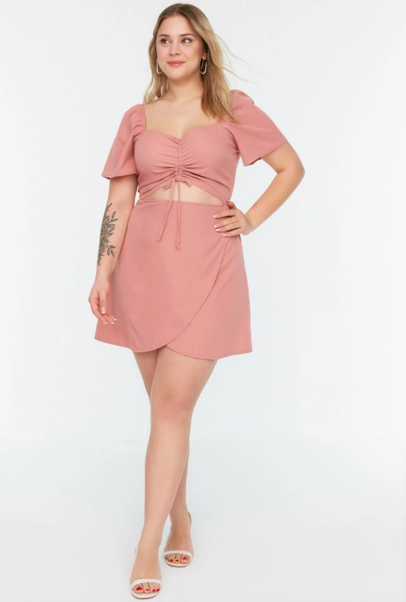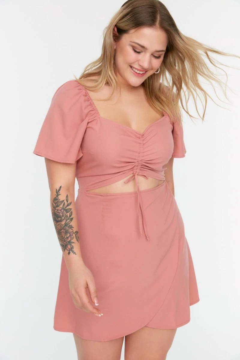 Trendyol Vrouwen Standaard Mouw V-hals A-lijn Grote Maten Jurk