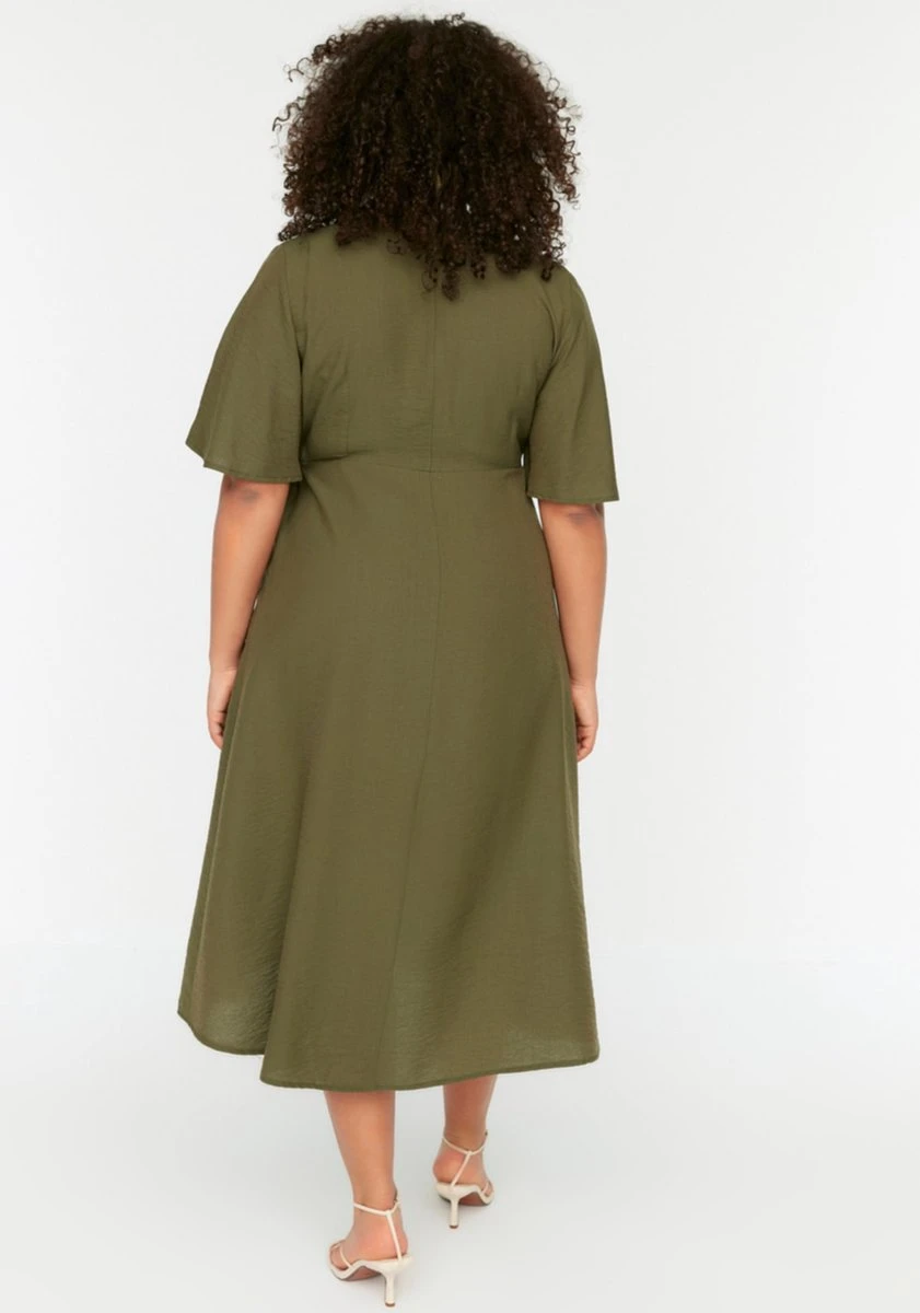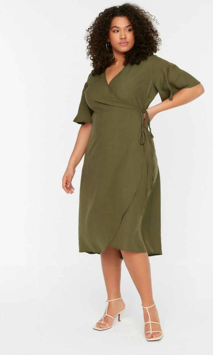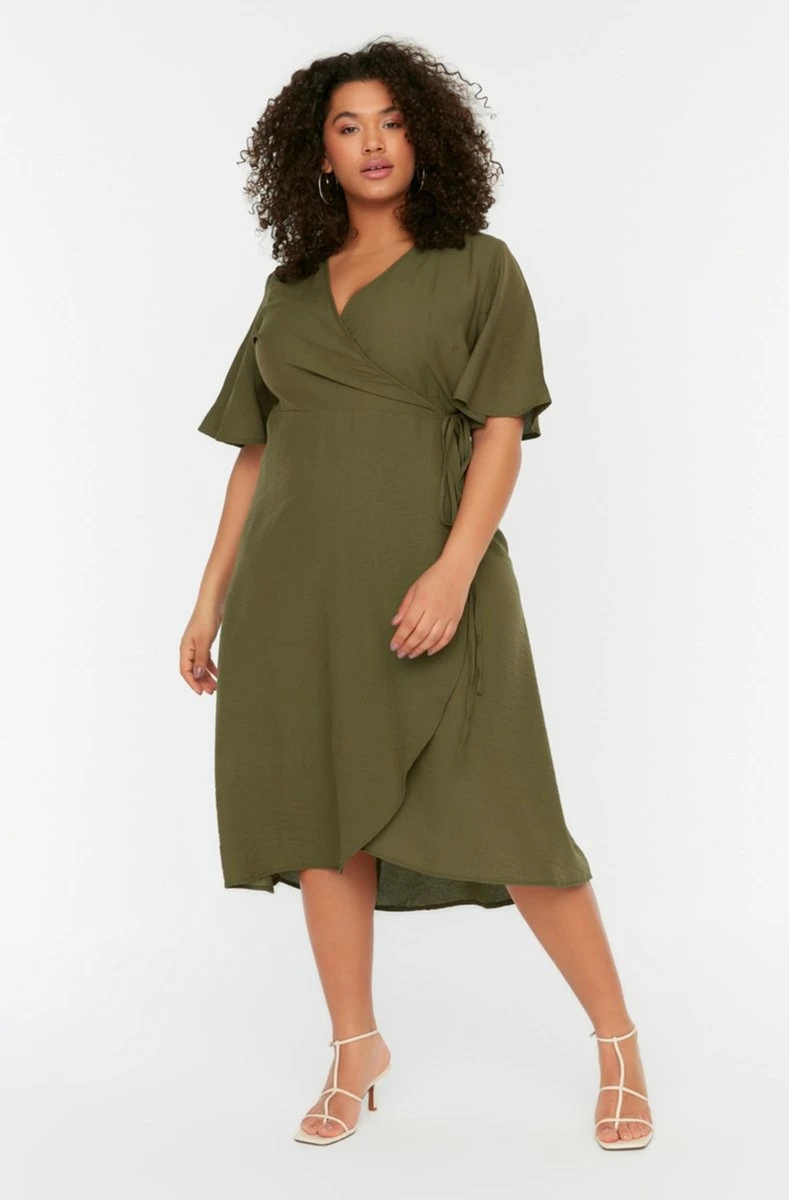 Trendyol Vrouwen Standaard Mouw V-hals Omslag Grote Maten Jurk
