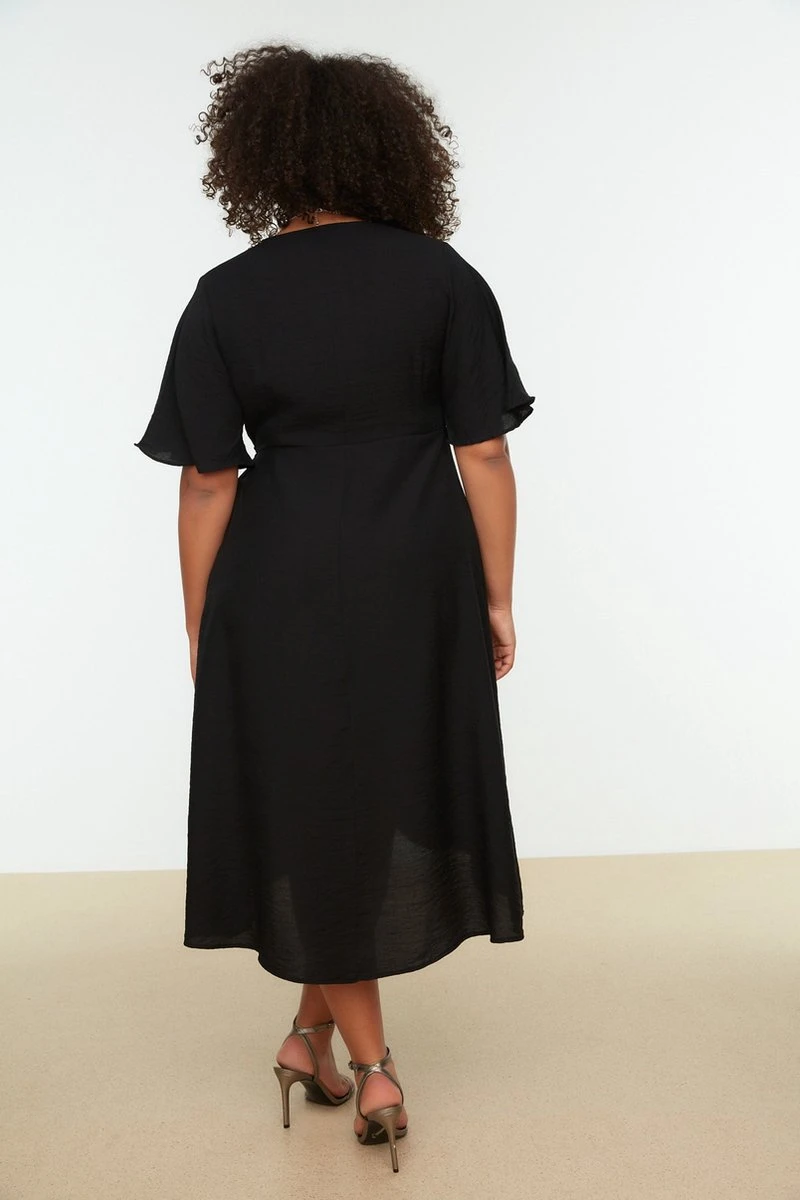 Trendyol Vrouwen Standaard Mouw V-hals Omslag Plus Size Jurk