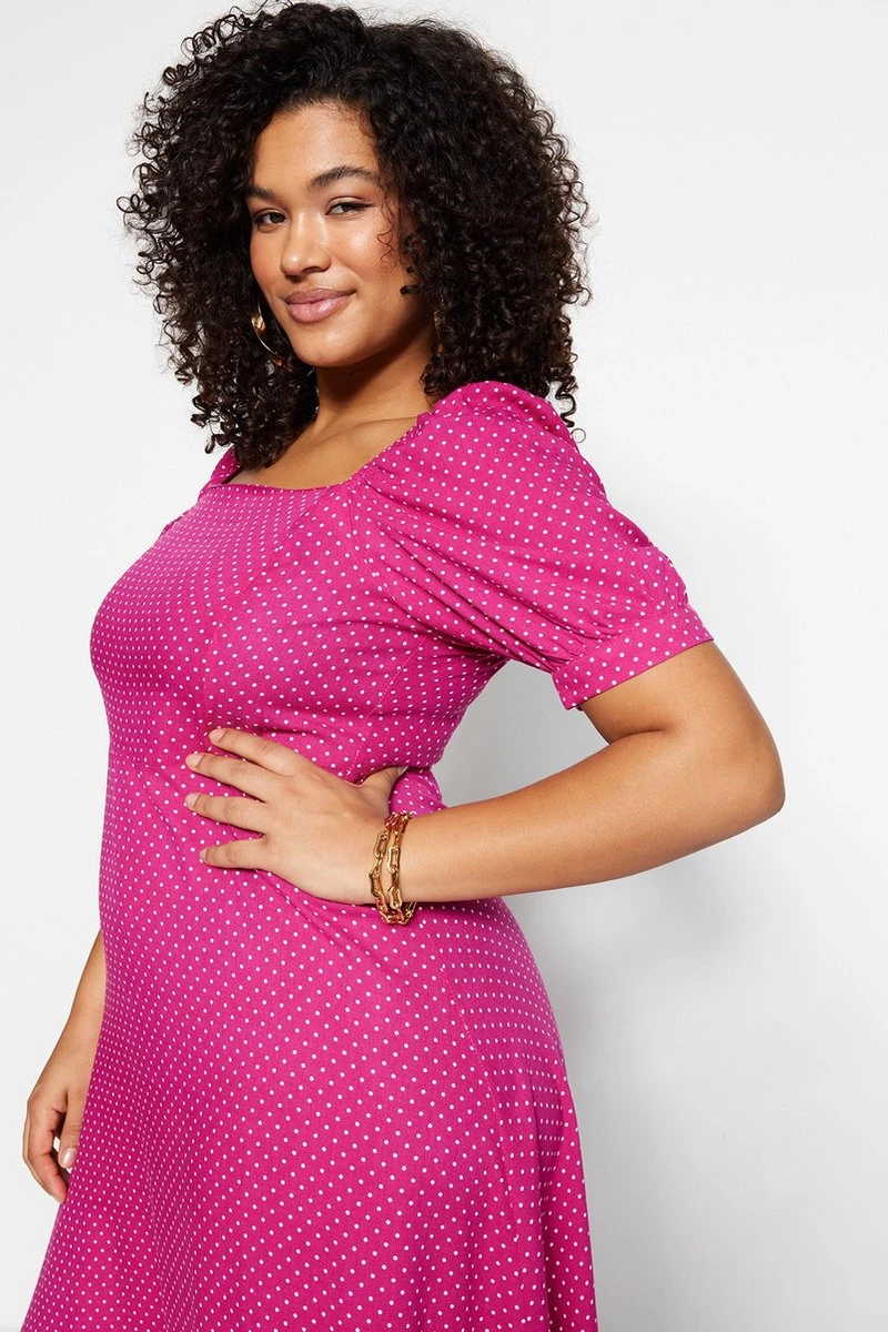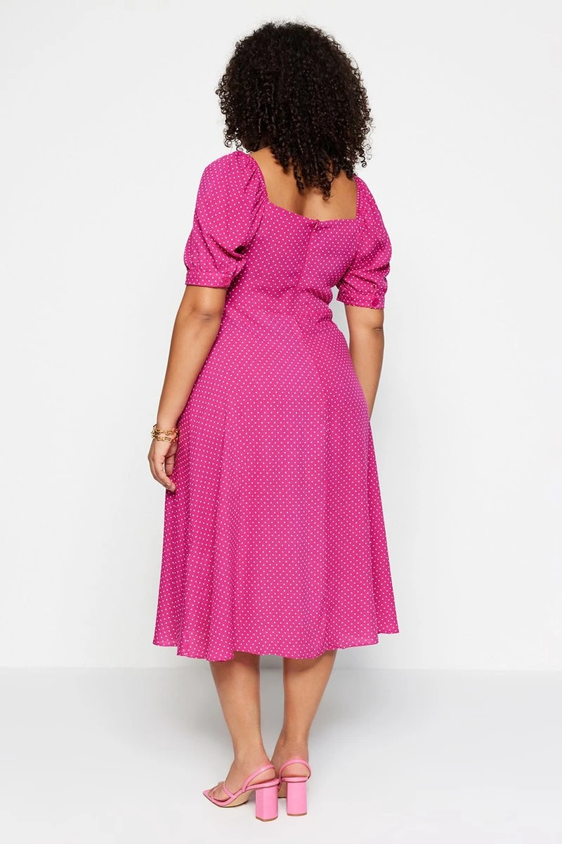 Trendyol Vrouwen Standaard Mouw Vierkante Kraag A-lijn Grote Maten Jurk