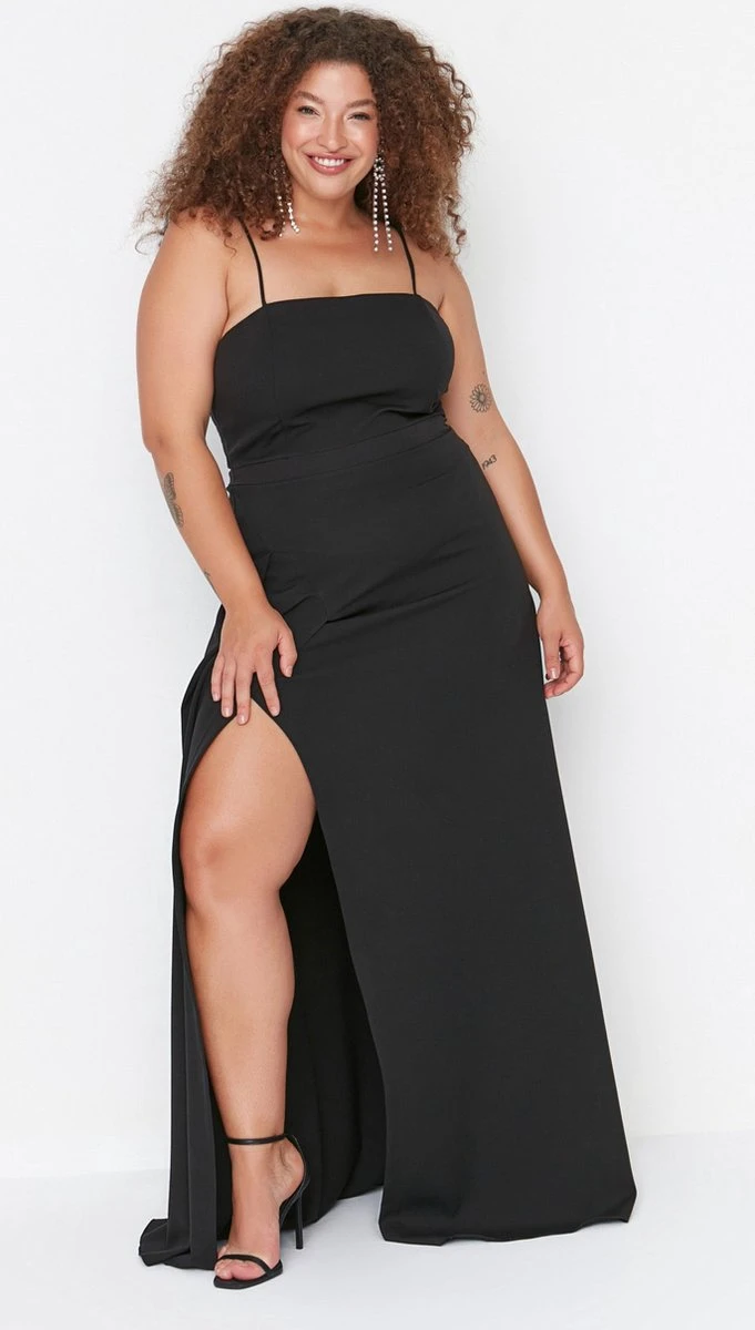 Trendyol Vrouwen Standaard Mouw Vierkante Kraag Bodycon Plus Size Jurk