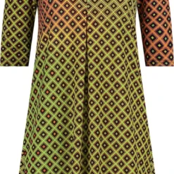 Twister jurk A-lijn Lange mouwen V-hals Lengte ca. 105 cm Zijdezachte jersey stof met allover print 92 % polyamide / 8 % elastaan.