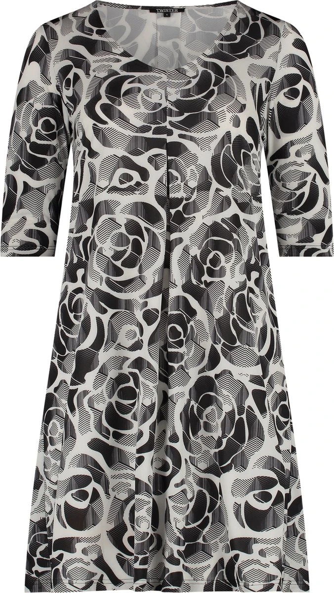 Twister jurk A-lijn Lange mouwen V-hals Lengte ca. 105 cm Zijdezachte jersey stof met allover print 92 % polyamide / 8 % elastaan.