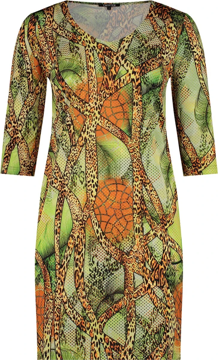 Twister bodycon Jurk Nauwsluitend 3/4 mouwen V-hals Lengte ca. 100 cm Jersey stof met allover print Zijdezachte jersey stof met allover print 92 % polyamide / 8 % elastaan.