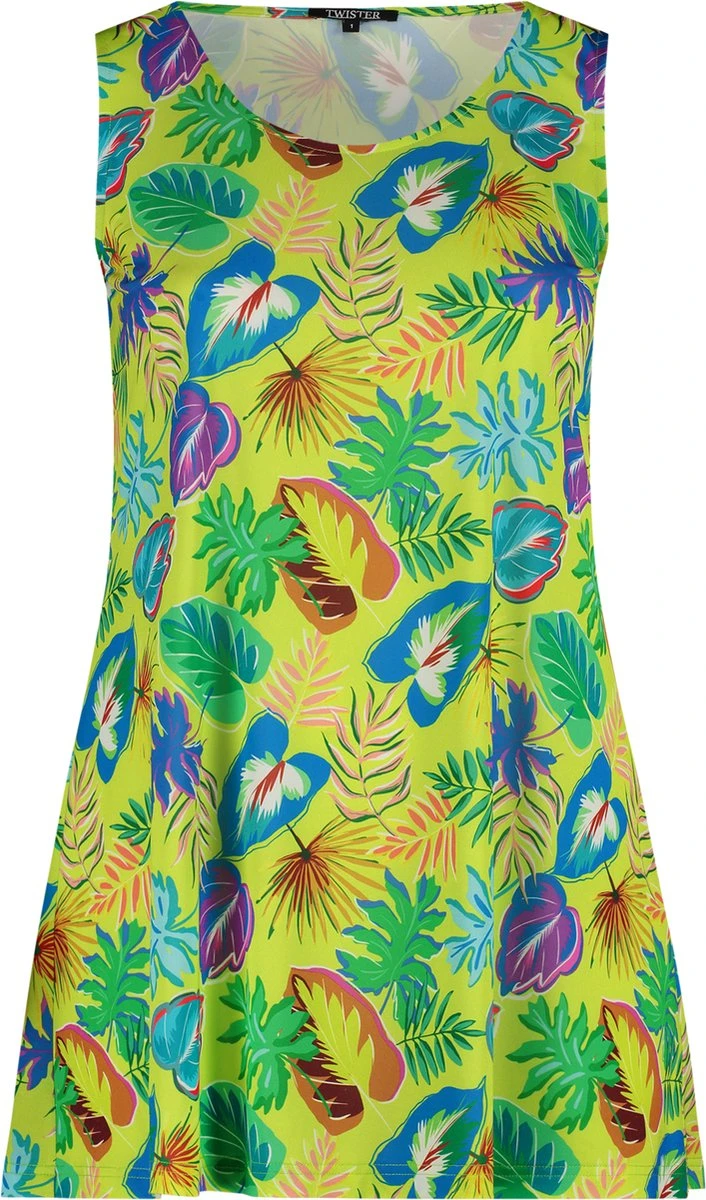 Twister Top A-lijn Mouwloos Ronde hals Lengte ca. 85 cm Zijdezachte jersey stof met allover print 92 % polyamide / 8 % elastaan.