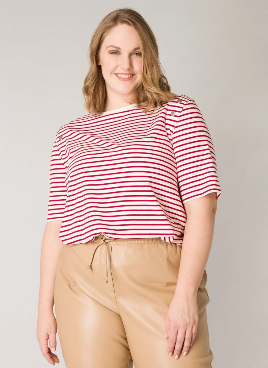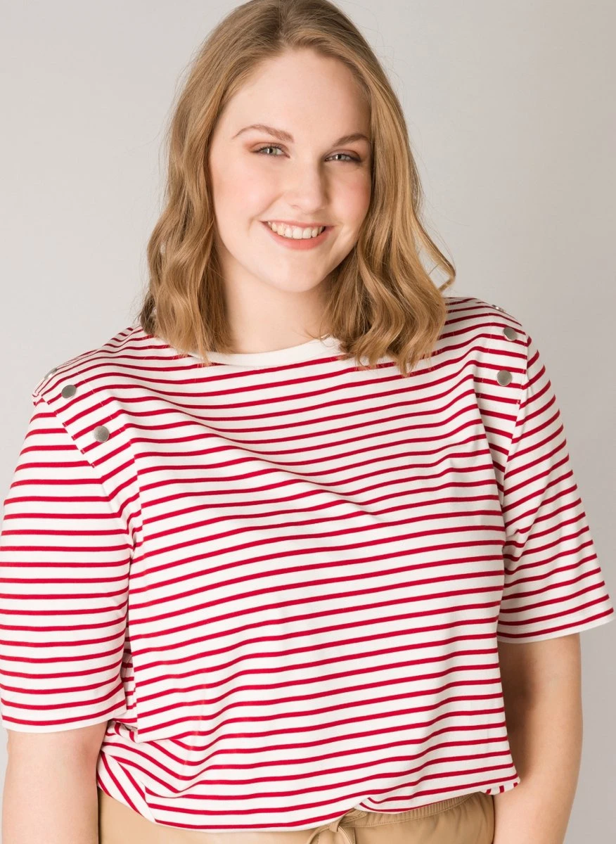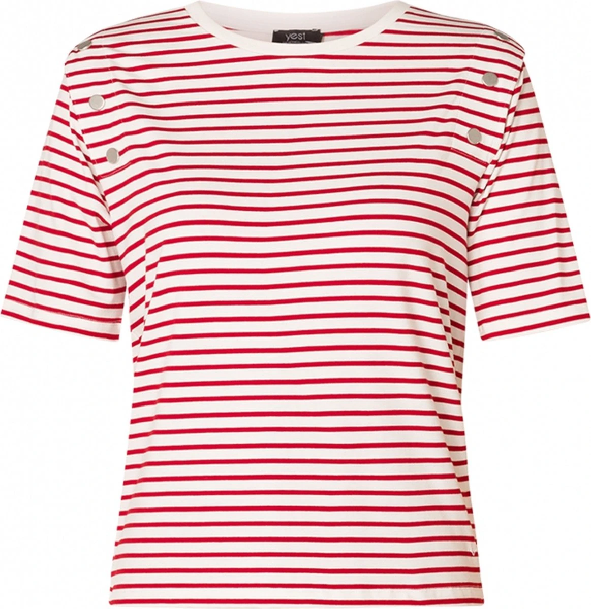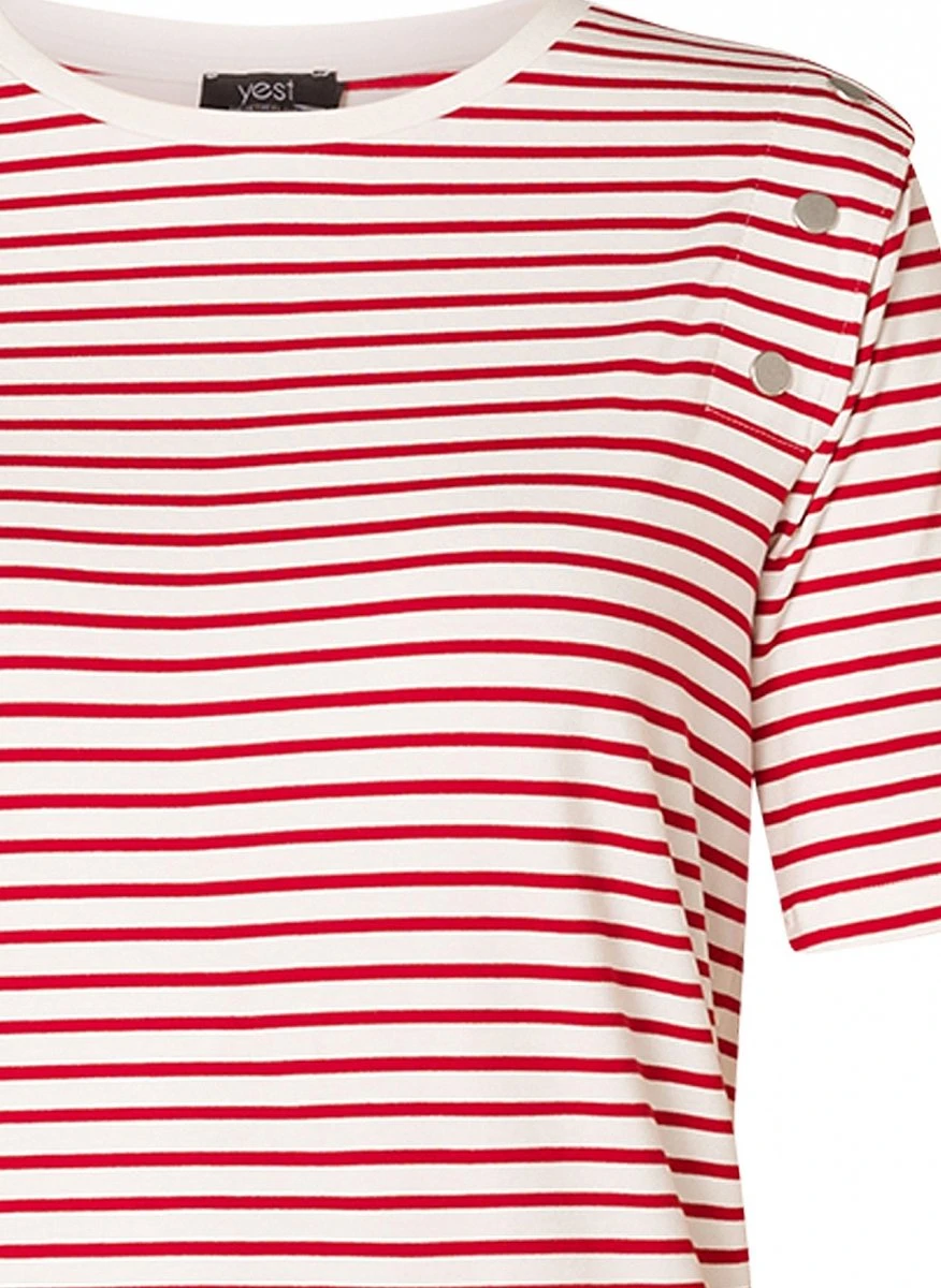 Regular fit t-shirt met strepen. Dit shirt heeft korte mouwen, een ronde hals en zilveren knopen op de schouders.