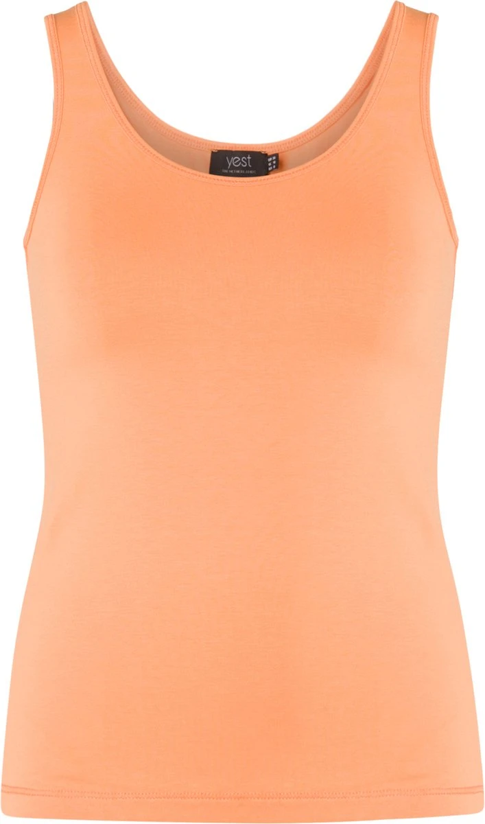 Gladde top van Yesta met een lage ronde hals en brede schouderbandjes. Verkrijgbaar in ecru, ocean blue, soft yellow en tangerine.