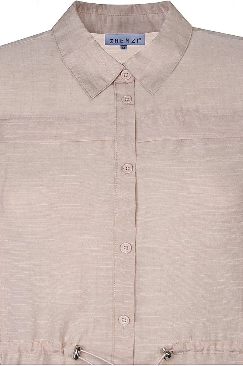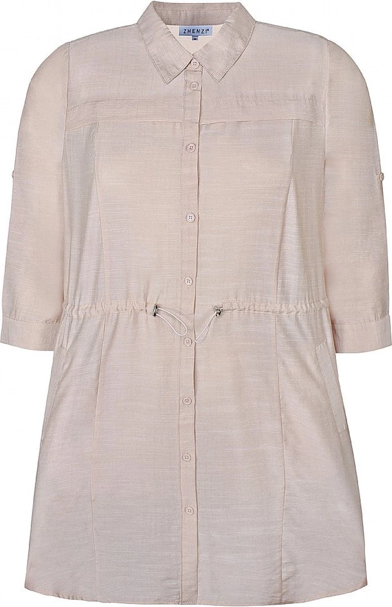 Blousejurk van heerlijke zachte stof! Luchtig voor het warmere weer en toch gekleed. Deze blousejurk heeft een aantrekkoord op de taille om deze desgewenst strakker te maken. Een klassieke kraag en driekwart mouwen maken de jurk af.
